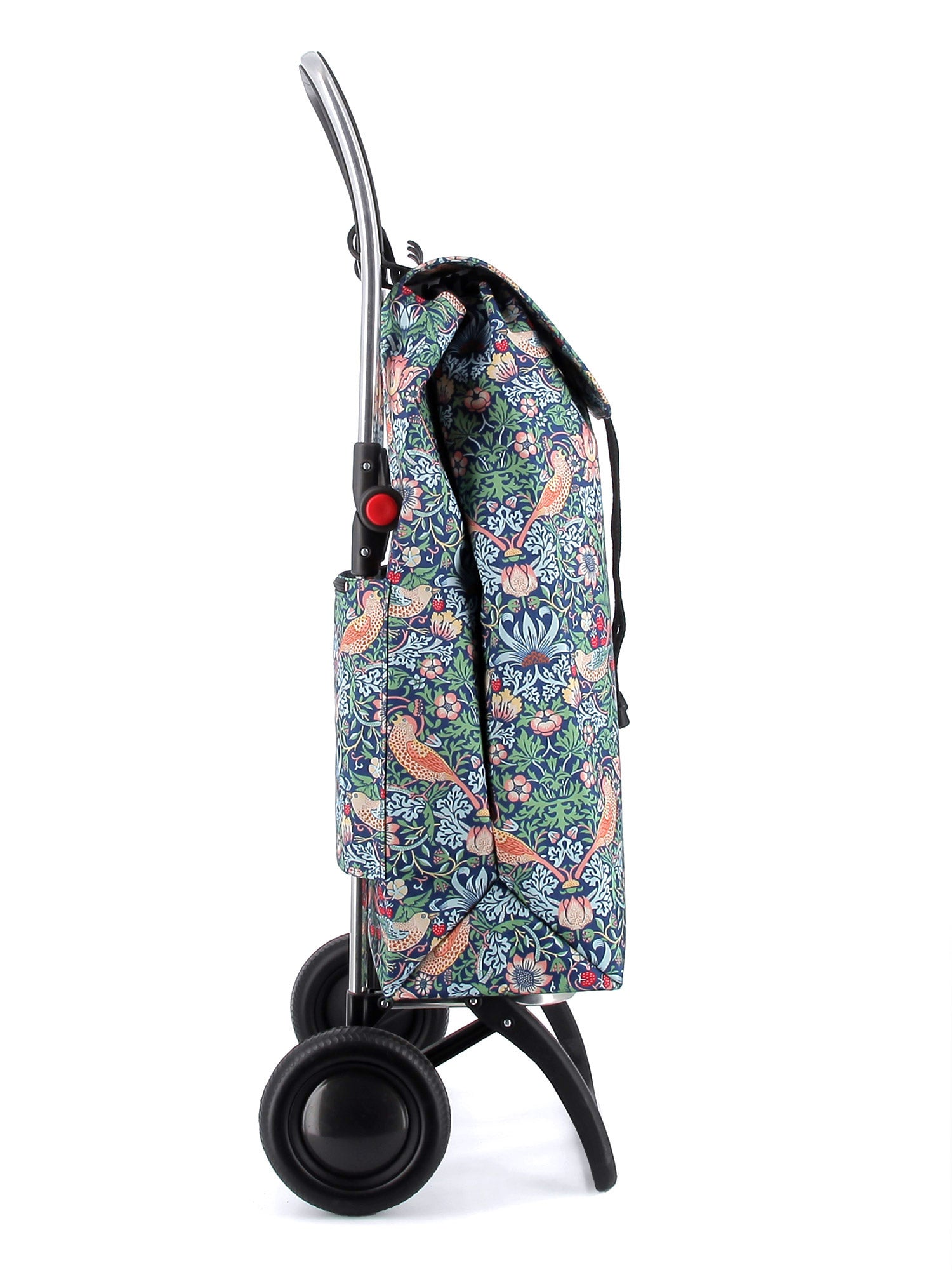 Klappbarer Einkaufstrolley Rolser aus Aluminium mit 2 Rädern, der viel unnötiges Schleppen erspart. Das Fahrgestell 2L verfügt über ein Klappsystem zum Vorwärtsklappen, das ein vollständiges Zusammenklappen ermöglicht. Mit Haken zum Anhängen an den Einkaufswagen im Supermarkt. I-MAX William Morris verfügt über eine doppelte Innentasche und eine Reißverschlusstasche an der Rückseite.